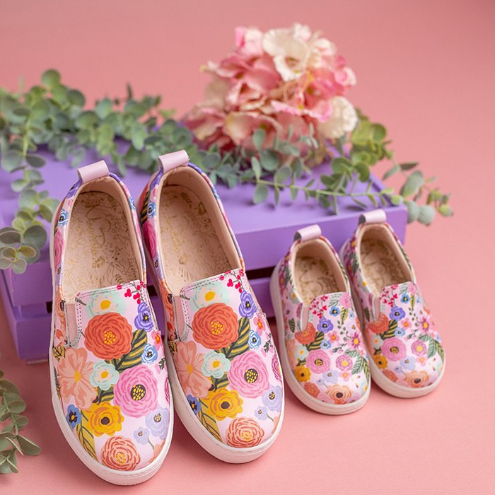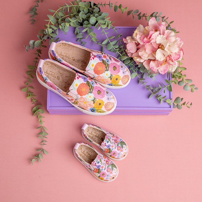 Zarif işlemeli çiçekler; yastıklı ortopedik iç taban, esnek kauçuk dış taban bu ayakkabıyı günlük kullanım için mükemmel kılar.