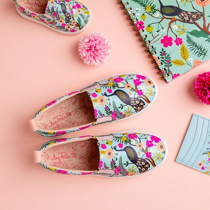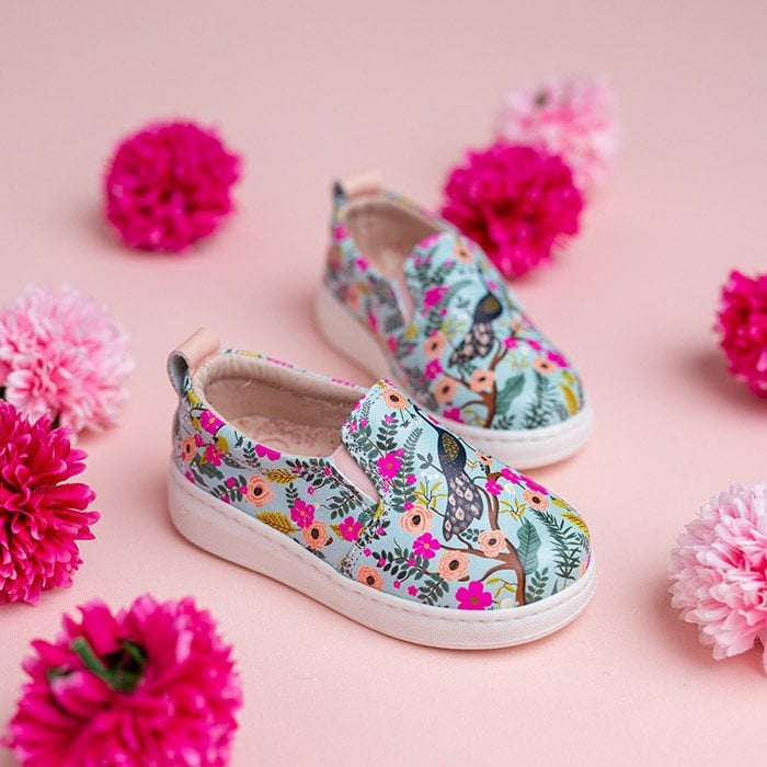Zarif işlemeli çiçekler; yastıklı ortopedik iç taban, esnek kauçuk dış taban bu ayakkabıyı günlük kullanım için mükemmel kılar.